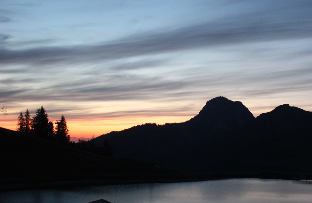 Als erstes hat uns der Komet damit geärgert, dass er sehr plötzlich aufgetreten ist. Damit will ich sagen, dass alle noch dem Kometen des letzten Jahres nachtrauerten, der im Frühjahr richtig schön zu sehen sein sollte. Aber der dann in einzelne kleine Stücke zerbrochen ist, die natürlich nicht mehr gut zu beobachten waren. Dann kommt er, Neowise, aber nicht am Abend, sondern am sehr frühen Morgen. Man musste schon Frühaufsteher sein, um ihn um 3:00 Uhr in der Nacht zu beobachten. Ich war es nicht, -Frühaufsteher-... Ab Anfang Juli wurde der Komet auch am Abend sichtbar, doch man musste schon bis zur Dunkelheit gegen ca. 22:30 Uhr (besser noch 23:00 Uhr) warten, um ihn dann am nordwestlichen Horizont erblicken zu können. Doch bei mir zu Hause steht im Norden der Wendelstein und der zieht sich mit den umliegenden Bergen ( Breitenstein etc. ) bis zum Nordwesten, fast Westen hin. Also mitten in der Nacht,... auf zum Sudelfeld. Dies habe ich dann auch am 13.07.2020 getan. Leider bei etwas wolkenverhangenem Himmel. Mit bloßen Auge konnte ich keinen Kometen sehen, deshalb einfach Fotos in Richtung Wendelstein, etwas links davon (leicht Richtung Westen) und das Resultat war das Folgende: (mit viel Software Nacharbeit) |