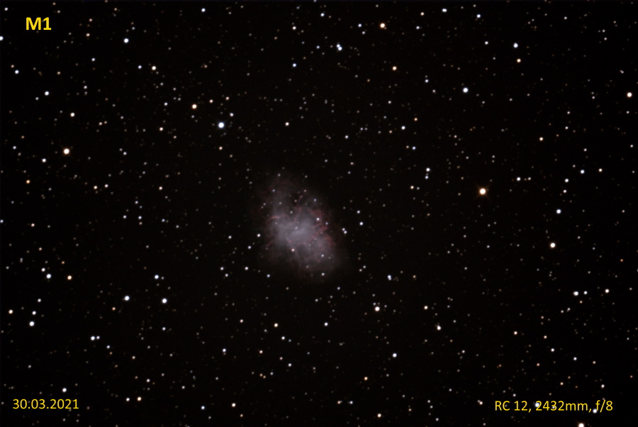 Der Krebsnebel ist der Rest einer Supernova Explosion, deren Licht (dieser Explosion) uns im Jahre 1054 erreicht hat und sich bis heute zu diesem Nebel weiterentwickelte.