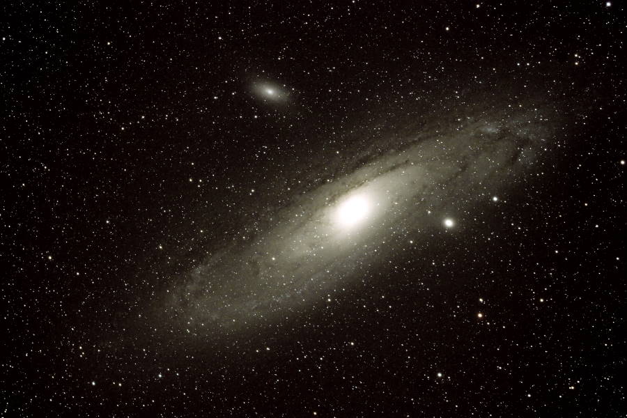 Die Andromeda Galaxy ist die unserer Milchstraße am nächsten gelegene Galaxie. Sie ist etwa 2,5 Millionen Lichtjahre entfernt und gehört zur sogenannten lokalen Gruppe. Die lokale Gruppe ist eine Ansammlung von Galaxien, die mit unserer Milchstraße zusammen eine Gruppe bilden. Solche Gruppen gibt es mehrfach und bilden wieder mit anderen Galaxien Gruppen einen Galaxien Haufen.