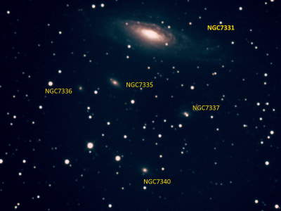 Diese Spiralgalaxie befindet sich in Gesellschaft mit einigen anderen Galaxien im Sternbild Pegasus.